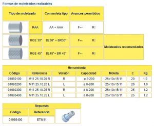 • Recomendado para moleteados tipo RGE