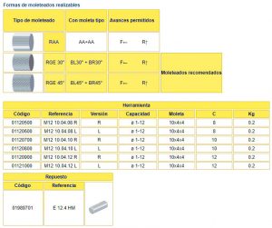 • Recomendado para moleteados tipo RGE en piezas de pequeño diámetro