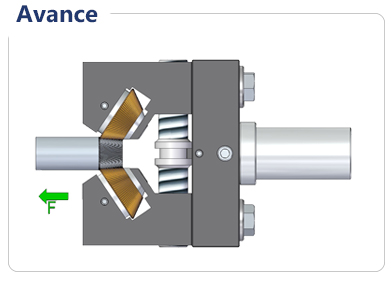 • Menor riesgo de flexión de la pieza al no ejercer presión radial