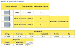 • Provista de arandela de HSS para evitar el desgaste de los brazos portamoletas