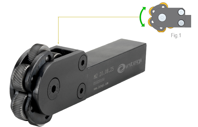 • Cabeza giratoria para el auto-centrado de las moletas (Fig.1)
