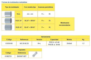 • Ajuste y centrado de las moletas sobre la pieza mediante husillo roscado