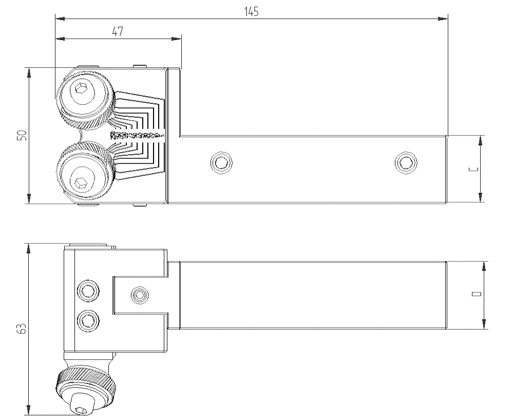 • Ajuste del ángulo de ataque mediante tornillos integrados en el mango