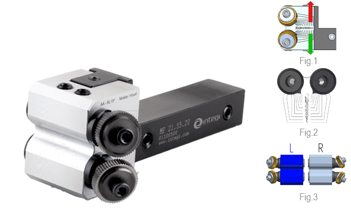 • Cabeza ajustable en altura para el alineamiento de las moletas (Fig.1)