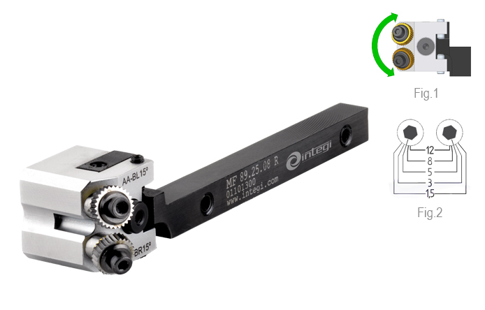 • Cabeza basculante para el alineamiento de las moletas (Fig.1)