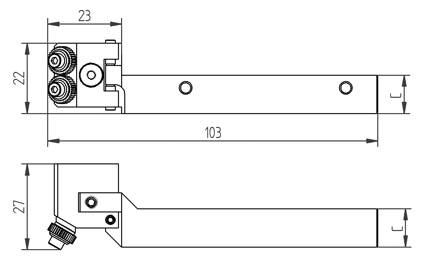 • Ajuste del ángulo de ataque mediante tornillos integrados en el mango